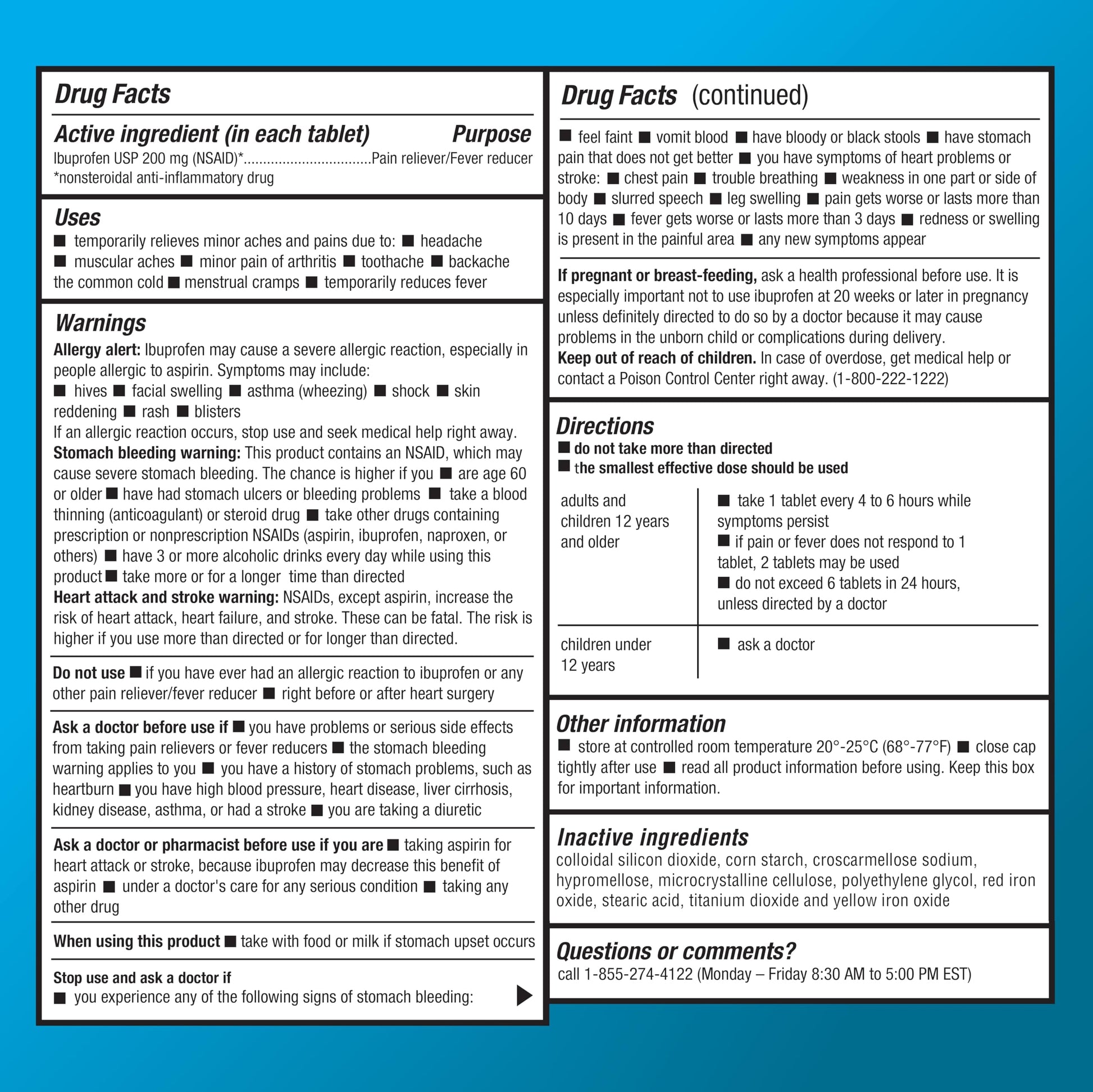 Details: ACTIVE INGREDIENT: This product contains ibuprofen 200 mg, a pain reliever and fever reducer (NSAID); compare to the active ingredient in Advil Ibuprofen TabletsPAIN RELIEVER AND FEVER REDUCER: Proven pain relief without a prescription for tough pain such as muscular aches, minor arthritis pain, toothache, backache, menstrual cramps or minor aches and pains from the common cold; also temporarily reduces fever