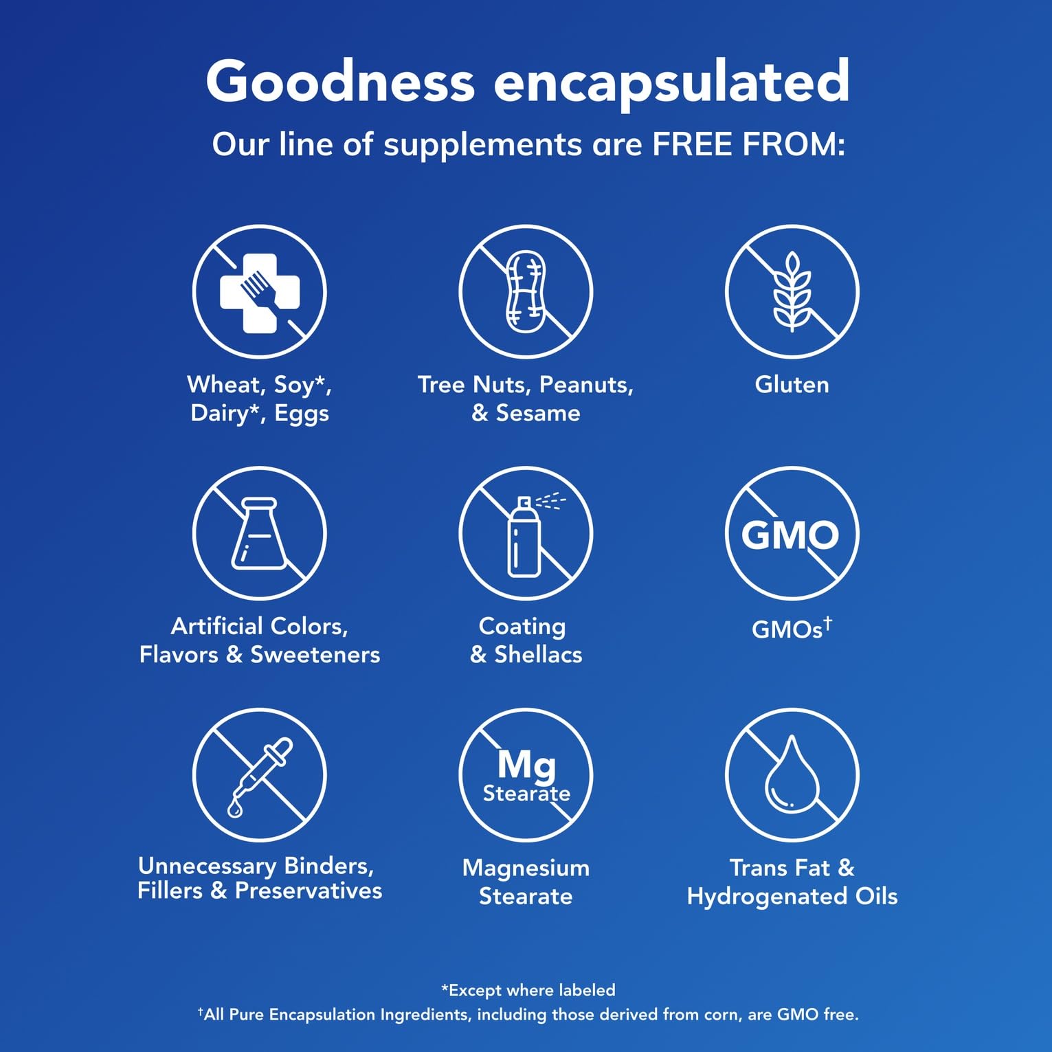 - Pure Difference: Our supplements are made with premium ingredients sourced from trusted suppliers, then manufactured and tested to verify potency and purity; Pure Encapsulations products are free from common allergens, unnecessary binders, fillers, and preservatives, and GMOs